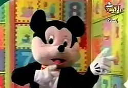 Farfour (Arabic: فرفور; also rendered as Farfur), a Mickey Mouse-like mouse,[13] is a costumed character with a high-pitched voice who co-hosted Tomorrow's Pioneers with Saraa. His name comes from a diminutive of fa'r which means "mouse" in Arabic.[14]