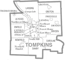 Tompkins County is a county located in the U.S. state of New York. As of the 2020 census, the population was 105,740.[1] The county seat is Ithaca.[2] The name is in honor of Daniel D. Tompkins, who served as Governor of New York and Vice President of the United States.