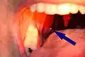 | A tonsillolith lodged in the tonsillar crypt | |