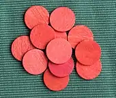 At the start of the game, each player receives a quantity of jetons, the amount being determined by how long they want to play. This is called the mise. The higher the mise, the longer the game will last. A typical amount might be 12 jetons per player. A small table basket (corbillon) is placed in the middle of the table to which each player antes 3 jetons. The contents of the basket constitute the pool. The game is played until only one player has any jetons left.[1]