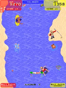 Toobin' is an Atari Games and Midway Games video game originally released as an arcade game in 1988 and is based on the recreational sport tubing. It was later ported to systems such as NES, Amiga, Commodore 64, MSX, and Game Boy Color. In the game, the player assumes control of the main characters Bif or Jet, guiding them through many winding rivers on an innertube.