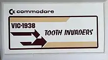 Tooth Invaders is a video game released by Commodore International for its VIC-20 home computer in 1981 and later for the C64 in 1982. It was developed in association with Camelot Marketing Group in order to positively reinforce the pros of brushing, flossing, and healthy dental care.[1] Seen as a fun way to teach children the importance of dental care, players fight as "Plaqueman" to fight plaque using a toothbrush and dental floss. It was also made in association with the American Dental Association, released during National Dental Month, and supported by dentists.[2]