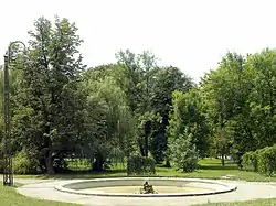 Planting of the surrounding park began at the same time and marked the beginning of the planned green areas in Belgrade as the ensuing park was the first park area in the city.[1] The park was patterned after the English parks.[5] The supervisor of the park's construction was Atanasije Nikolić, engineer, urbanist and professor at the Belgrade Lyceum, who also arranged the nursery garden, Košutnjak Park and avenues along city's main streets and squares (Terazije, Kneza Miloša Street, modern Bulevar Kneza Aleksandra Karađorđevića), with the seedlings which originated from the Topčoder nursery.[1][10]