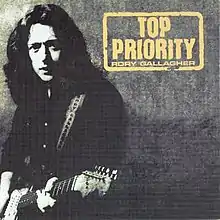 Top Priority is Rory Gallagher's eighth studio album and tenth album overall. It was his fourth and final studio album for Chrysalis Records both in the UK and USA. The album was the second with his revised power trio band. Like the previous album Photo-Finish, Top Priority is a return to hard rock. The ballads, acoustic and folk influences that were seen on albums such as Calling Card are replaced by more conventional but powerful blues rock.[2]