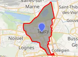 Torcy (French pronunciation: [tɔʁsi]) is a commune in the Seine-et-Marne department in the Île-de-France region in north-central France. It is located in the eastern suburbs of Paris, 21.8 km (13.5 mi) from the center of Paris.