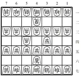 Tori shōgi (禽将棋 or 鳥将棋, 'bird chess') is a variant of shogi (Japanese chess), which was invented by Toyota Genryu in 1799 despite being traditionally attributed to his master Ōhashi Sōei. It was first published in 1828 and again in 1833. The game is played on a 7×7 board and uses the drop rule; it is the only traditional shogi variant, possibly besides wa shogi, to do so. This is one of the more popular shogi variants. There were tournaments in London and Royston in the 1990s and early 2000s.