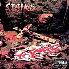 The album is known for its graphic cover art. The cover depicts a bloody Barbie doll on a crucifix with nails hanging from a plastic frame, a buried person with a rosary protruding from the person's nose, and a knife impaling a Bible.[38][39] On October 23, 1997, when Staind met Limp Bizkit vocalist Fred Durst at the Webster Theater in Hartford, Connecticut,[3][29] Tormented's album cover appalled Durst so much that he attempted to remove Staind from a concert bill shortly before their performance. Durst thought that Staind were Theistic Satanists.[29][39][40] Despite his attempts to stop the band from performing, Durst eventually changed his mind and allowed Staind to perform.[39] After hearing Staind perform, Durst was so impressed that he signed them to Flip Records[40][41] by February 1998.[30] Durst produced Staind's second album Dysfunction (1999).[42]