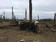 Twenty-three deaths occurred as a result of a single tornado that moved through Lee County, Alabama.[27] A majority of the deaths occurred in and around the small Alabama town of Beauregard.[28] Four of the dead were children.[29] Ten of the victims were from one family.[30] Sixty patients were received at the East Alabama Medical Center; however, only four remained hospitalized on March 4.[31] Many people were initially reported as missing.[32] Drones with heat-seeking devices were utilized in the search effort for survivors while ground crews had to wait for morning light on March 4.[28] In a later report on March 6, all tornado victims in Alabama have been accounted for.[33]