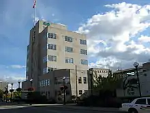 The TH&B's second train station in Hamilton, built in 1932-33, was in fact the first building in Canada adhering to the International Style.[4] The station was refurbished in 1996 and is now used by GO Transit for both bus and train service as the Hamilton GO Centre.