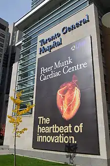 Toronto General Hospital is the home of the Peter Munk Cardiac Centre (PMCC), which is one of the largest open heart centers in Canada and is ranked first in Canada and in the top ten in North America for academic productivity.[7] Many clinical firsts in cardiovascular care were performed at TGH. The center is named after Peter Munk, the founder and chairman of Barrick Gold corporation, who donated $100 million in 2017, the largest donation to a hospital in Canadian history. He donated a total of $175 million since 1993 to the hospital.[8]
