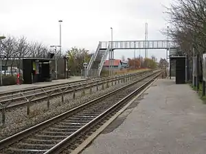 Torsøvej station is a railway station serving the district of Risskov in the northern part of the city of Aarhus in Jutland, Denmark. The station is located on the Grenaa Line between Aarhus and Grenaa. The train services are currently operated by the railway company DSB which runs frequent local train services between Aarhus and Grenaa as part of the Aarhus Commuter Rail service.