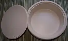 A tortillero[1] is a round shaped container which helps keep tortillas warm during a meal.[2] Warm tortillas are placed in the warmer, which is often lined with a cloth or paper napkin. Tortilla warmers made of woven natural fibers,[3] terra cotta,[4] plastic, and styrofoam[5] are available and commonly used in Mexican and Mexican-influenced cultures.