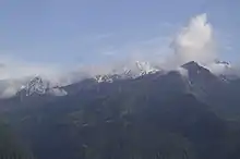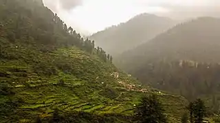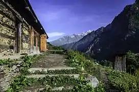 Tosh village is in Himachal Pradesh state of India. It is located at about 2,400 metres (7,900 ft) in elevation on a mountain slope on the right bank of the Parvati River in the Parvati Valley, surrounded by mountains (TOSH is the last village).[1][2] The main occupation of the people in Parvati valley is Tourism. Apple orchards are also a big source of income for the local people. Wooden houses in the village are excellent example of architecture of Mountain people. Tosh is less expensive than its neighbour town Kasol. The guest houses and the hotels are available both at the entrance and far end of the village.[3] Alongside the village is a right-bank tributary of the Parvati River. The Parvati River begins at the Mantalai Glacier within the Parvati Valley.[4] The peaks surrounding the glacier include Papasura, White Sail, Angduri, Pinnacle, and Devachan.[5] Tosh village is reached by bus from Kullu to Barshaini via Kasol and Manikaran and then a one-hour hike.[2][6][7] It is described as a "traditional village turned hippie colony".[7]