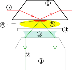 (Cis-)total internal reflection fluorescence microscope (TIRFM) diagram