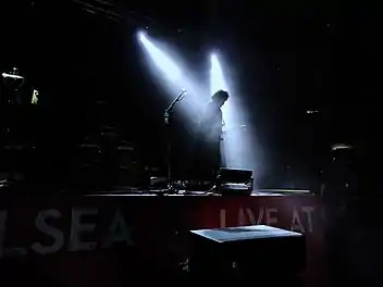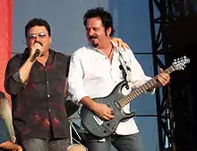 ![]() Toto live in Copenhagen, Denmark, at K.B. Hallen July 20, 2010. 2010 lineup, left to right, Simon Phillips, David Paich, Mabvuto Carpenter, Jory Steinberg, Steve Lukather, Nathan East, Steve Porcaro, Joseph Williams | |