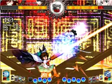 Cards fall into three categories: System Cards, Skill Cards, and Spell Cards. System Cards include bombs (like in Immaterial, knocks the enemy back), weather change, and other miscellaneous options. Skill Cards upgrade special attacks to do more damage, allow the player to gain alternate special attacks, or both. Spell Cards are powerful attacks that automatically work once activated. Proper assembly of card decks according to the player's style is key to mastering the game, since the decks limit what the characters can do during a match.