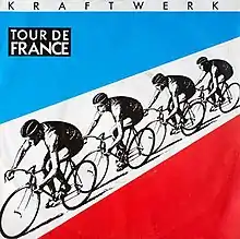 "Tour de France" is a song by German electronic band Kraftwerk. It was first issued in early August 1983, peaking at number 22 in the United Kingdom singles chart since 6 August. It is notable for the use of sampled voices and mechanical sounds associated with cycling that were used to supplement a simple electro-percussion pattern – an approach Kraftwerk had used on earlier tracks such as "Metal on Metal" (from Trans-Europe Express) and "Numbers" (from Computer World). The music is credited to Ralf Hütter, Florian Schneider and Karl Bartos; the lyrics are credited to Hütter and Maxime Schmitt, a French label associate of the band. The melody appears to quote a fragment of the opening section of Paul Hindemith's "Sonata for Flute and Piano" ("Heiter Bewegt").