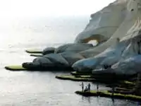 The Rosh HaNikra grottoes are cavernous tunnels formed by sea action on the soft chalk rock. The total length is some 200 metres. They branch off in various directions with some interconnecting segments. In the past, the only access to them was from the sea and experienced divers were the only ones capable of visiting. Today a cable car takes visitors down to see the grottos. A kibbutz, also named Rosh HaNikra, is located nearby. The Israeli city Nahariya is located about 10 km (6 miles) south of Rosh HaNikra. you must take a cable car to get into the grottoes. The Cable car is situated very close to the Lebanese border.