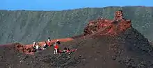 Tourism is a major contributor to Réunion's economy.[40] In 2014, 405,700 foreign tourists visited the island.[39] Despite this, the island does not experience mass tourism. The island has impressive natural features inland, but these natural tourist attractions are not well known.[41] In order to boost its tourist industry, the authorities in Réunion heavily promote the country in France and at travel and tourism conferences throughout the world, and diversification of Réunion's tourist industry is a high priority.[40] The tourist industry promotes the island's environment and encourages outdoor activities and ecotourism.[42] Réunion's peak tourist season is from late June to early September, with another busy period from October to early January.[43]