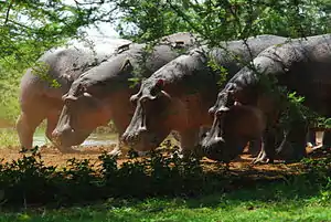 Tanzania has almost 38% of its land reserved as protected areas, one of the world's highest percentage.[9] Tanzania boasts 16 national parks and is home to a large variety of animal life. Among the large mammals include the Big five, cheetahs, wildebeest, giraffes, hippopotamuses and various antelopes. Tanzania's most well known wildlife attractions are located in the northern part of the country and include the Serengeti National Park, Tarangire National Park and Lake Manyara National Park. The Serengeti National park encompasses the world-famous great migrations of animals.[10] The Serengeti National Park is the most popular park in the country and had the chance to host more than 330,000 visitors in 2012.[11]