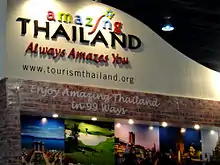 The Tourism Authority of Thailand (TAT), a state enterprise under the Ministry of Tourism and Sports, uses the slogan "Amazing Thailand" to promote Thailand internationally. In 2015, this was supplemented by a "Discover Thainess" campaign.[7]