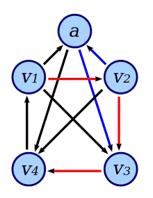 Another basic result on tournaments is that every strongly connected tournament has a Hamiltonian cycle (Camion 1959). More strongly, every strongly connected tournament is vertex pancyclic: for each vertex , and each in the range from three to the number of vertices in the tournament, there is a cycle of length containing .[2] A tournament is -strongly connected if for every set of vertices of , is strongly connected. If the tournament is 4‑strongly connected, then each pair of vertices can be connected with a Hamiltonian path (Thomassen 1980). For every set of at most arcs of a -strongly connected tournament , we have that has a Hamiltonian cycle [3] This result was extended in [4]