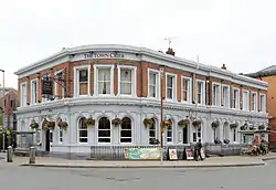 The Town Crier was built in 1865 as a hotel.[1] Its original name was either the Queen Commercial Hotel,[2] or the Albion Hotel.[3] On the opposite corner was the Queen Hotel, which was intended to serve the first-class railway passengers; the Town Crier was for the rest.[3] The two hotels were linked by an underground passage.[2] This building has subsequently been used as a public house.[4]