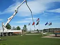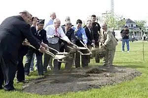 By the spring of 2009, the committee had reached its funding goal to cover the cost of construction and the project was ready to be put out to bid. The Tonawanda Town Board agreed to designate space for the memorial at Walter M. Kenney Field and fully manage its construction.[6][12] The project was put out to bid three times before an offer was returned within the range that the committee could afford.[6][12] With a construction contractor confirmed and work set to begin, the memorial steering committee held a groundbreaking ceremony on May 22, 2009 at what was to be the future site of the memorial. Joining the steering committee that day were local military veterans and residents, as well as town and state officials.[13]