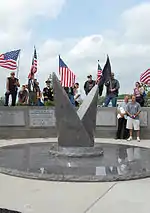 The ceremony featured multiple military, veteran, and police honor guards, a flag raising ceremony, several speeches, and the unveiling of the memorial's V-shaped granite monument.[15][16] In addition, a member of the memorial steering committee read a letter from U.S. President Barack Obama written to the people of the Town of Tonawanda in recognition of the day's dedication ceremony.[15]