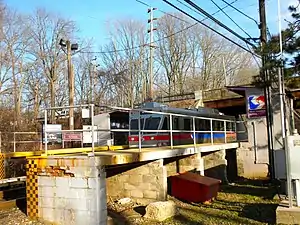 Township Line Road station, formerly known as West Overbrook station, is a SEPTA rapid transit station in Haverford Township, Pennsylvania. It serves the Norristown High Speed Line (Route 100) and is located at Township Line Road (U.S. Route 1) and Grove Place, although SEPTA gives the address as being at City and Grove Place. Only local trains stop at Township Line Road. The station lies 1.4 track miles from 69th Street Terminal.