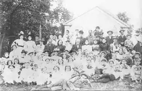 The ME Church's eighty-seven members soon found themselves in financial difficulties, however, having gone heavily in debt to build their new sanctuary. The chairman of the church's building committee had advanced his personal funds to complete the construction, thereafter becoming embroiled in years of litigation with the church.[8] By 1874, the church was drawing larger crowds under then-pastor Joseph Stitt, who was described as an "excellent leader of singing".[11] An afternoon Sunday school session was particularly popular, "principally devoted to learning new hymns, which attracted many of the young people of the town, especially the young men", noted one account.[11] When the ME church held its twenty-fifth anniversary celebration in 1896, it opened with prayer and a piano concert, "favored with a beautiful selection sung by Mrs. Randolph Murphy", said a contemporary report.[11]