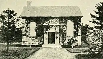 In 1829 George commissioned the famous architect, John Verge, to build Toxteth House on 39 hectares (96 acres) that he had acquired in Glebe. The original house built by Verge is shown below. It was a rectangular two-story building with single storey wings. It also had a stone flagged verandah around two sides of the house. The gardens were very elaborate and contained an orchard and even a large private cricket ground.[4] Over the years George Allen built several other houses on the estate including Tranby and Emslee which are shown below in the wide photo of the estate. In 1847 he built a Wesleyan Chapel on the grounds, a shown below.[5] George had a particular interest in horticulture and the grounds surrounding the house contained many different varieties of trees and flowers. In 1845 he entered the Horticultural Show and displayed flowers which included amaranthus, celosia, fuchsia, salvia and amaryllis. He also entered various varieties of apples, pears, figs, passionfruit medlars almonds and capsicum.[6]