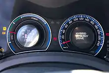 The Auris Hybrid shares the same powertrain and batteries as the Prius.[17] Combined fuel economy is 74.3 mpgimp (3.80 L/100 km; 61.9 mpgUS).[15][18][19] Carbon dioxide emissions (CO2) are 89 g/km on the standard test cycle which allows the model to be exempted from paying Vehicle Excise Duty (for cars registered prior to 1 April 2017) and the London congestion charge.[19] In July 2010, the Auris Hybrid was selected as "WhatGreenCar Car of the Year 2010" by magazine What Car?.[19]