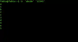 The utility reads a byte stream from its standard input and writes the result to the standard output. As arguments, it takes two sets of characters (generally of the same length), and replaces occurrences of the characters in the first set with the corresponding elements from the second set. For example,