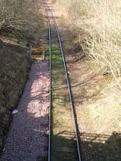 The line at the station site is still operational (2017), serving the Killoch Washery to the south-east, beyond Drongan.