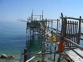 The Trabocchi Coast, which corresponds to the coastal stretch Adriatic of province of Chieti (Abruzzo), is a 70-kilometer coast[1] from Ortona to San Salvo in Italy. It comprises a number of coves and reefs below the hills that end at the Adriatic Sea marked by the spread of Trabucco - fishing machines on piles. Many of the towns on the Coast maintain their own characteristics and traditions.[2][3]