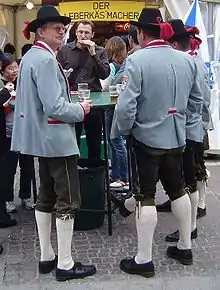 In 1859, the first association to promote traditional costume was founded in Miesbach in Bavaria. In the following years, similar tracht associations (Trachtenvereine) were founded throughout Germany and Austria. The first umbrella organisation for the tracht associations was founded in 1890.[4][6] In 1895, the Bavarian novelist Maximilian Schmidt organized a parade of traditional costume at Oktoberfest, with 1,400 participants in 150 traditional costume groups.[7]