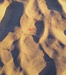 As the trackers get closer to the animal, they must make sure that they see it before it sees them. Some trackers maintain that an animal keeps looking back down its own trail, always on the alert for danger coming from behind. When the spoor is very fresh, trackers may have to leave the spoor so that the animal does not see them first. Animals usually rest facing downwind, so that they can see danger approaching from the downwind side, while they can smell danger coming from behind them. An animal may also double back on its spoor and circle downwind before settling down to rest.[1] A predator following its trail will move past the resting animal on the upwind side before realizing that the animal had doubled back, and the resting animal will smell the predator in time to make its escape.