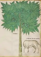 The Egerton manuscript, the earliest version and acquired by the British Museum in 1839, is incomplete.[7] The Sloane manuscript is a volume with 109 folios of large parchment, (365 mm x 265 mm) It is illustrated with nearly 500 polychrome representations of plants, animals and minerals, which were all used as primary materials to produce drugs.