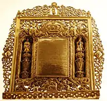 Iron was not worked in the Mesoamerican period, with its mining and working introduced by the Spanish.[31] Exploration of the metal was initially banned to protect the industry in Spain, but as tools made from the metal were essential for exploration and conquest, the prohibition was soon ignored.[12][32] Initially the items were purely utilitarian such as tools, locks, horseshoes and tools.[31][33] Later in the colonial period, iron began to be used in other ways, including decorative elements in churches and mansions such as railings and balconies.[12] The height of traditional Mexican ironworking was in the 17 and 18th centuries.[31]