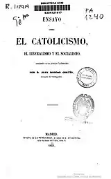- full title Ensayo sobre el catolicismo, el liberalismo y el socialismo, considerado en sus principios fundamentales