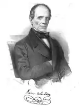 The Carlist version of Traditionalism was developed mostly by vast array of periodicals, headed by La Esperanza and its chief, Pedro de la Hoz.[43] The first complete Carlist lecture of Traditionalism – by some considered the first complete lecture of Traditionalism at all, preceding those of Balmes and Donoso - is supposed to be the 1843 work of Magín Ferrer.[44] Other authors who ventured to offer a more systematic lecture, like Vicente Pou,[45] did not make a major impact.[46] Discussing ongoing politics Carlist Traditionalism focused on negative points of reference,[47] opposing Liberalism and its incarnations like constitutionalism, electoral system, ongoing secularization of state, desamortización and centralization.[48] Concepts attributed to the claimants and named minimalismo and montemolinismo are political strategies rather than theories;[49] the most lasting contribution to Carlist Traditionalism of the era was a so-called double legitimacy theory.[50]