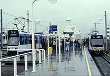 Effective 1 December 1990, line 5 was extended south from Zuid station along Parnassusweg, Buitenveldertselaan and Beneluxbaan before turning into and terminating at the Binnenhof stop (today called the Stadshart stop).[5] From Zuid station to the junction to Binnenhof/Stadshart, tram line 5 shared its tracks with metro line 51, a hybrid metro/sneltram line which opened on 2 December 1990 between Zuid station and Westwijk. Each station between De Boelelaan/VU and Oranjebaan had two sets of adjacent platforms: high-level platforms for the high-floor metro 51 vehicles, and low-level platforms for tram 5.[6]