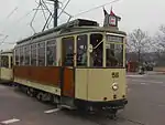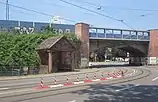 In 1950, the connection between Schwabentorbrücke and Lorettostraße lost its line traffic, but remained as an operational route to the depot until 1959.[24] Line 5 experienced a further 300 m extension from Immentalstraße to St. Urban church.[25] A further extension at Richard-Wagner-Straße and Hinterkirchstraße to Zähringen could not be implemented.