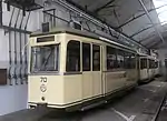 During the war, a severe accident occurred immediately after an air attack on the level crossroads at Hellentalbahn. On 12 October 1916, around 9:30 pm, a tram driver travelling into the city did not see the closed barrier at night and collided with a railway train travelling uphill. The driver was severely injured, and the conductor and the only passenger only suffered minor injuries.[13][14]