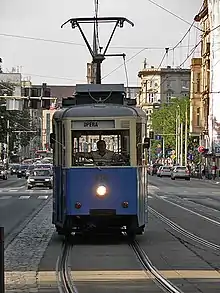 The Wrocław tram system is the tram system in Wrocław, Poland. Having first opened for service on 10 July 1877 with horsecars, it is the third oldest tramway in Poland (after Warsaw and Szczecin). The system is operated by Miejskie Przedsiębiorstwo Komunikacyjne we Wrocławiu (MPK Wrocław). The system consists of 23 lines with a total line length of 258.2 kilometres (160.4 mi). There are six depots and 20 loops. The system uses 1,435 mm (4 ft 8+1⁄2 in) standard gauge.