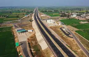 Costing ₹5,108 crore, it will have 70 metre right of way, 122 bridges and underpasses and 1,36,000 trees would be planted on either sides is being developed by the National Highways Authority of India (NHAI) under Bharatmala project.[2][4] Grenfield alignment will reduce the Ismailabad to Narnaul distance by 35 km from the existing 265 km route to 230 km new route.[5] Construction will create 1,500 full-time jobs for 3 years and 120 ongoing jobs will be created for the Toll Plaza staff.[4] To reduce the environmental impact the fly ash will be used from the Tau Devilal Thermal Power Plant at Panipat, Indira Gandhi Super Thermal Power Project at Jhajjar and Rajiv Gandhi Thermal Power Station at Hisar.[4]