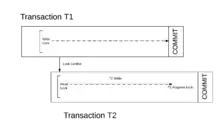 A transaction is a collection of operations that can execute and commit changes as long as a conflict is not present. When a conflict is detected, a transaction will revert to its initial state (prior to any changes) and will rerun until all conflicts are removed. Before a successful commit, the outcome of any operation is purely speculative inside a transaction. In contrast to lock-based synchronization where operations are serialized to prevent data corruption, transactions allow for additional parallelism as long as few operations attempt to modify a shared resource. Since the programmer is not responsible for explicitly identifying locks or the order in which they are acquired, programs that utilize transactional memory cannot produce a deadlock.[2]