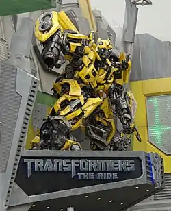 Transformers: The Ride was primarily developed by Universal Creative, the research and development division of Universal Parks & Resorts. Universal Creative's Thierry Coup was the Creative Director of the ride, having worked on previous Universal attractions including Harry Potter and the Forbidden Journey, The Amazing Adventures of Spider-Man, and Shrek 4-D.[37] Michael Bay, director of the Transformers film franchise, collaborated with Universal Creative on the ride, despite an earlier blog post that suggested otherwise: "I don't support it yet – I'm not involved and [I'm] not sure the story of the ride works, and I know Optimus is not going to just show up to be directed by some new people that have never worked with him," he wrote.[38] Bay's involvement in the attraction's development was revealed by Mark Woodbury, president of Universal Creative, in an NBC documentary on Islands of Adventure's Wizarding World of Harry Potter.[39] Industrial Light & Magic developed the special effects for the ride, having previously worked on Transformers, Transformers: Revenge of the Fallen and Transformers: Dark of the Moon.[40][41][42] Each installation is reported to have cost US$100 million.[1][43]
