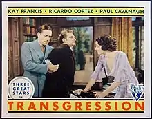 Transgression is a 1931 Pre-Code American drama film directed by Herbert Brenon, using a screenplay written by Elizabeth Meehan, adapted from Kate Jordan's 1921 novel, The Next Corner. The film stars Kay Francis (on loan from Paramount), Paul Cavanagh (on loan from Fox), and Ricardo Cortez, and deals with the romantic entanglements of a wealthy English businessman, his wife and a Spanish nobleman.